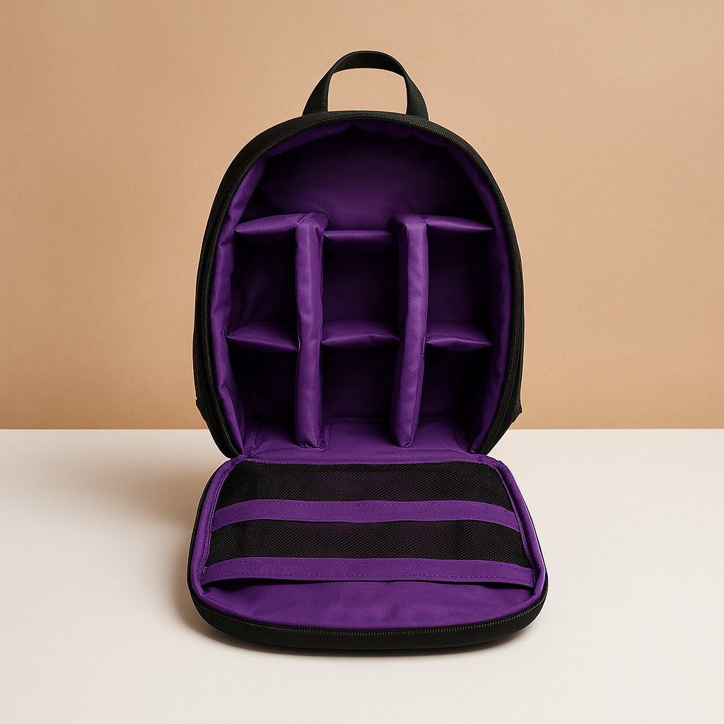This camera backpack is designed to keep equipment organised while staying easy to carry throughout the day. The structured interior allows space for cameras and accessories, helping everything stay neatly arranged and accessible when needed.